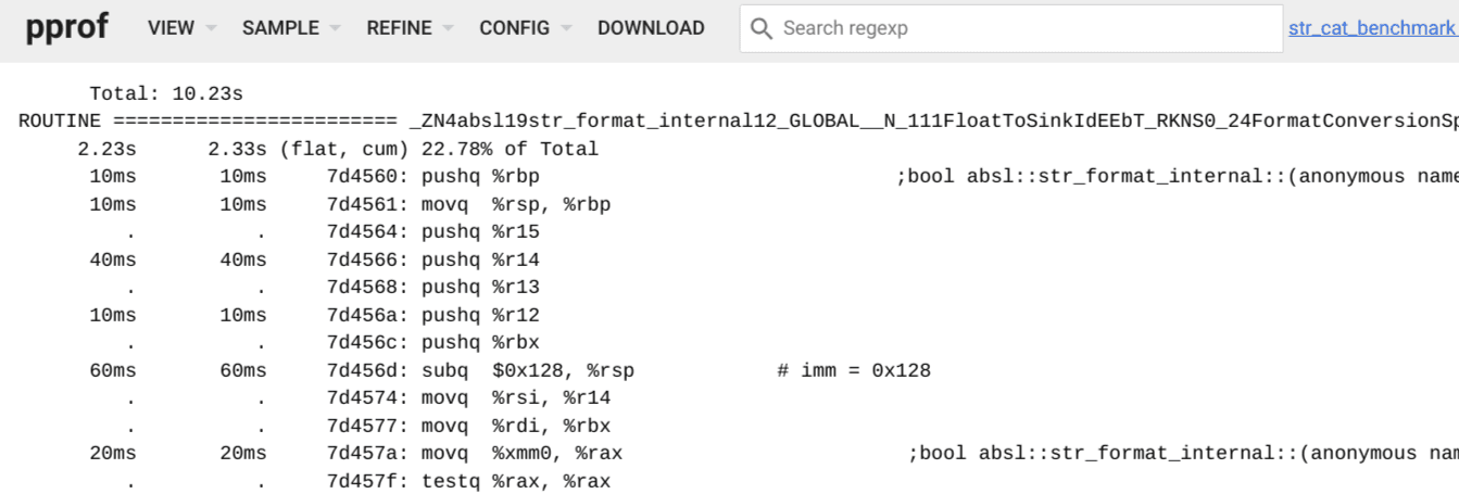 基于上面采集到的 profiling 数据,可以使用 pprof 工具进行分析: